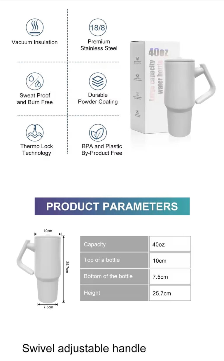 🥤 Asa Clip-On: Engánchalo en rejas, mochilas, bolsos o sillas.